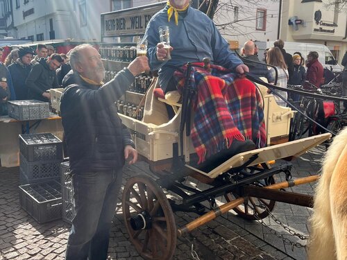 Bei strahlendem Sonnenschein wurde am Samstag auf dem Schadenhofplatz in Biberach traditionell die Märzen-Saison eröffnet. Vor der besonderen Kulisse und begleitet vom historischen Brauerei-Pferdegespann wurde das erste Fass Berg Märzen feierlich angestochen.