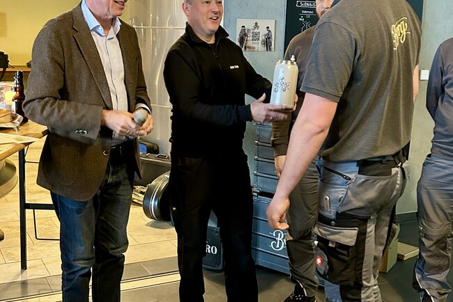 Besonders gefreut haben wir uns, Jonathan zur bestandenen Prüfung als Brauer und Mälzer zu gratulieren. Zur Anerkennung erhielt er feierlich seinen Krug – handgemacht, wie unser Bier. Beim Krug sieht man es, bei unserem Bier schmeckt man es – ein Zeichen für Handwerk, Leidenschaft und den nächsten Schritt auf seinem Weg.